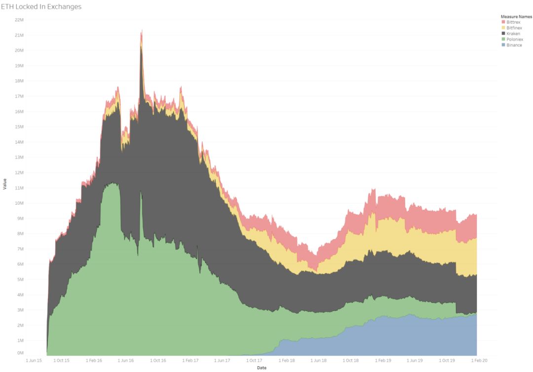 在牛市期间,交易所持有的以太币价值 115 亿美元从历年的数据看以太坊的发展
