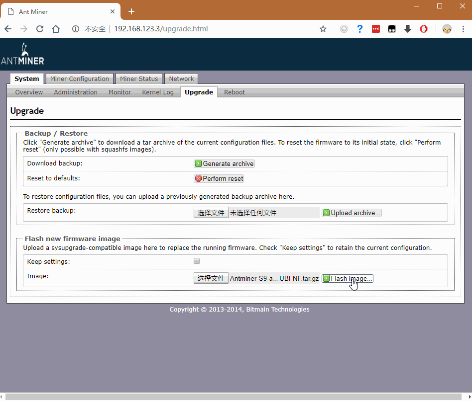 4、购买使用二手机器或在非官方维修点维修过,使用前需刷新固件,并修改矿机登录密码。