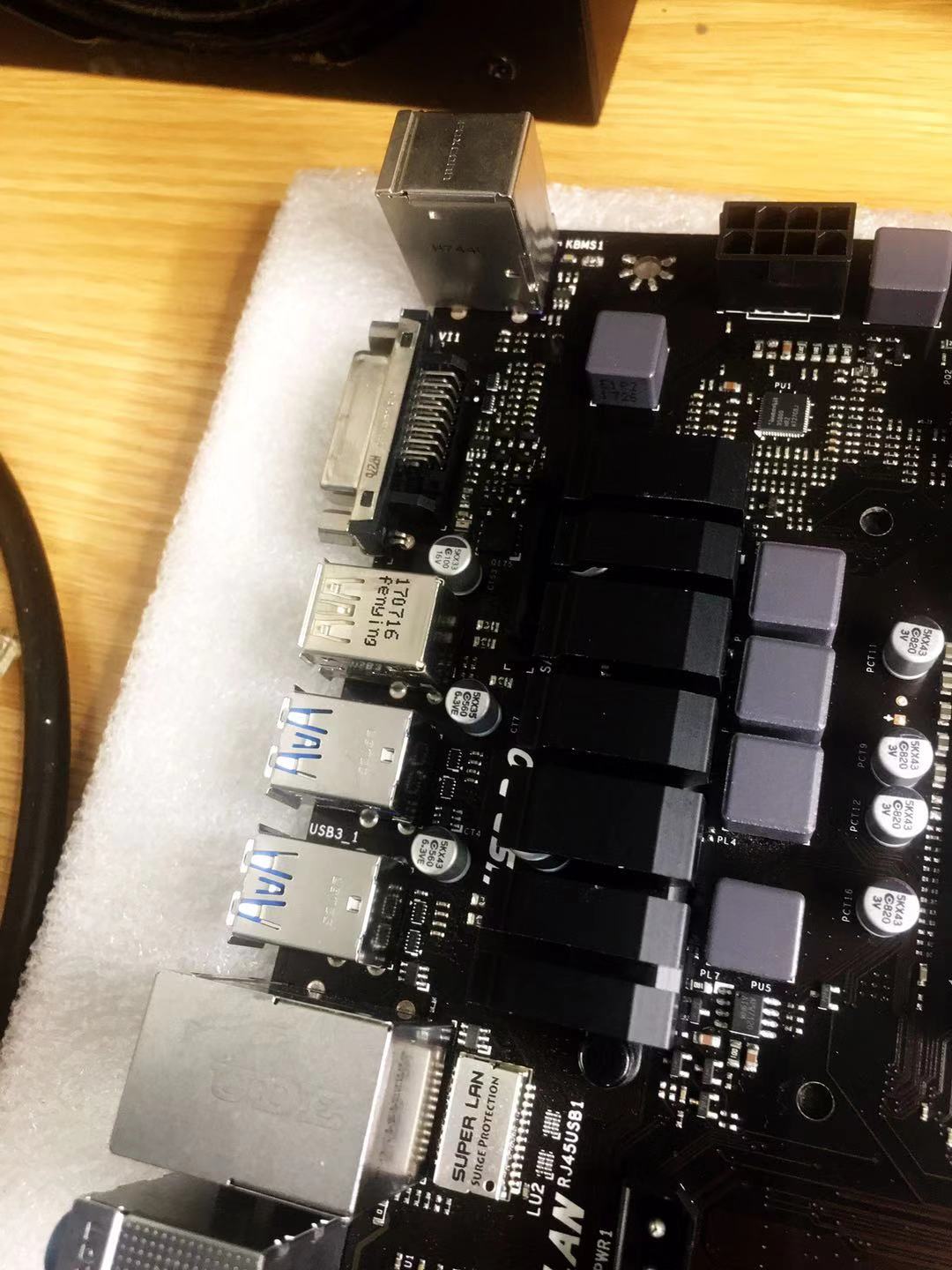 上图中的主板是某粉丝要求代淘的4片TB250-BTC中的一个。可以见到,成色实在是太垃圾了。
