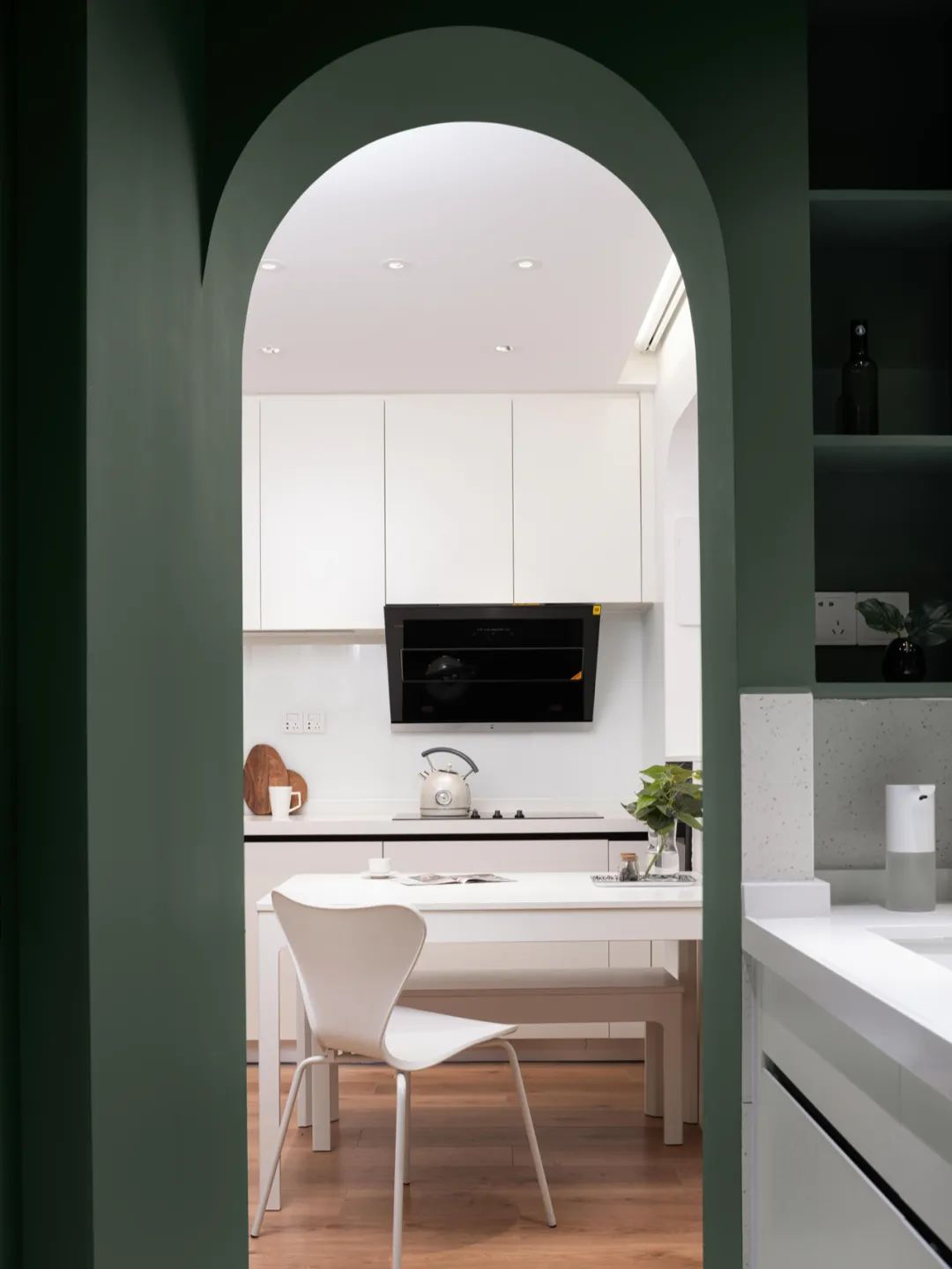 方形拱门之下, 再搭配一组边角型的圆拱设计,瞬间提升了整个空间的圆滑度,十分有趣。