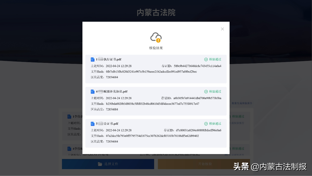 根据检索,内蒙古自治区使用区块链技术对跨省的赋强公证文书进行执行审查的,此前并无先例,特别是此类跨越多省的案件在全国范围内也属罕见。