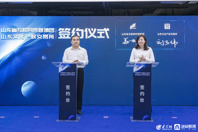 山东省互联网技术传媒集团、山东文化艺术产权交易所与山东未来集团、山东安可区块链技术研究所、山东演艺集团公司、中国邮储银行山东支行、世博日本动漫、英诺造型艺术等“海豹数藏”服务平台灭世合作方一同签订。