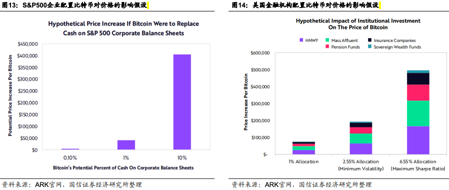 截止2021年5月7日,比特币的市值约为黄金的9%;假设比特币市值达到目前黄金的市值,比特币的价格将达到60万美元/个。根据ARK基金研究,假设标普500的上市公司拿出现金的1%对比特币进行配置,比特币的价格将上涨约40,000美元;假设美国金融机构将资产的2.5%-6.5%对比特币进行配置,比特币的价格将上涨约200,000到500,000美元。智能合约—基于编程语言运行在去中心化网络上的不可篡改的合同