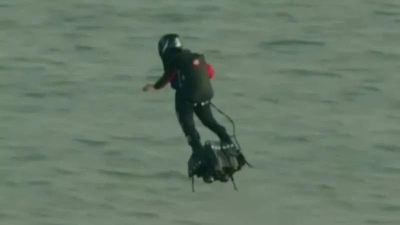 8月4日,40岁的法国发明家弗兰基·萨帕塔(Franky Zapata)依靠一个背负式喷气式飞行器,飞越了英吉利海峡,耗时22分钟(35.4公里),最高速度170公里/小时。