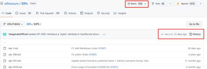 关键主要有两种方式,一个是由EIP的Github库观查最新变化。