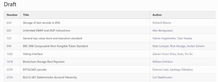 例如Draft分类下,就能迅速查询到现阶段有什么协议提案处于Draft的情况。