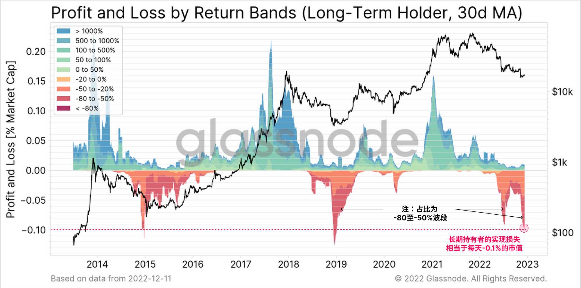 值得关注的是长期性持有人贡献,这些人在这一周期时间完成了在历史上2个最大的一个相对性损害高峰期。截止到11月,长期性持有人损失达到每日占总市值的-0.10%的最高值,其范围仅与2015年和2018年的时间低点非常。6月份售卖也是一样让人印象深刻,每日损害总市值的-0.09%,长期性持有人很严重的主导性确定了-50%至-80%损失。