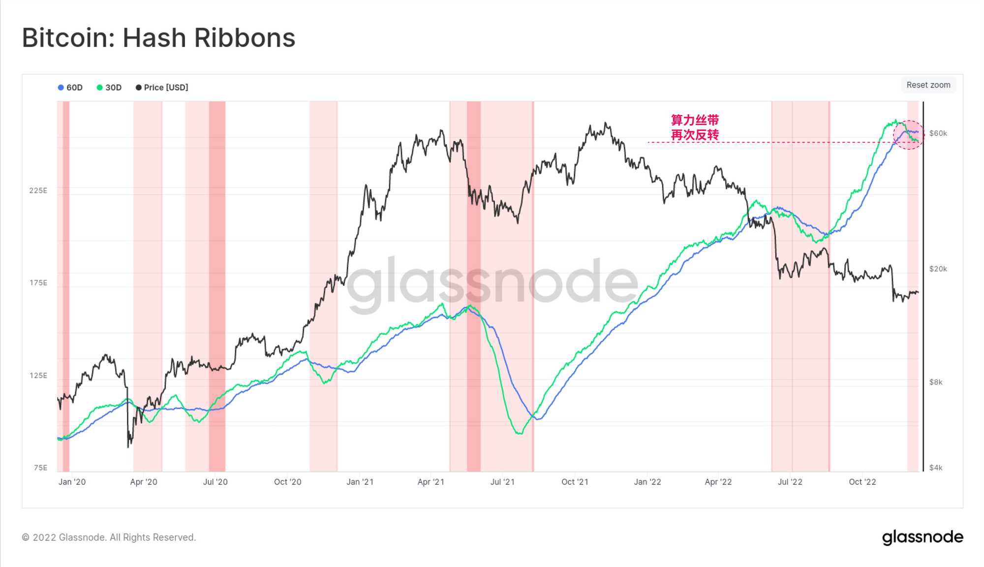 因而,算率-彩带再度颠倒,交接点出现在了11月中下旬。这就意味着矿业有充足的工作压力,一些网络运营商已经将ASIC挖矿机退出。这一般与挖矿收入流小于他的经营开支相关,使挖矿机徒劳无益。