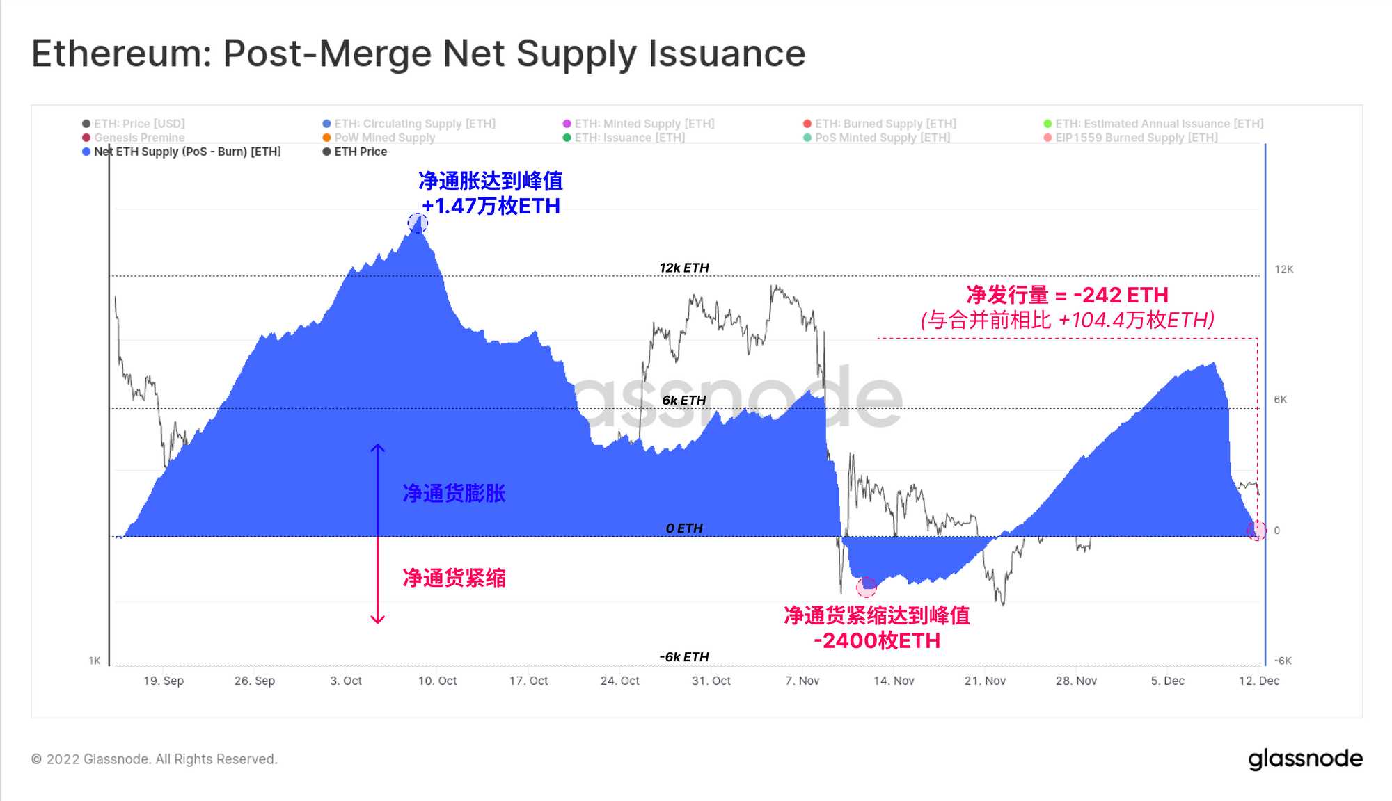 在写这篇时,合拼后ETH供货转变刚变为净通货紧缩,现阶段的以太坊供给量比合拼时太低了-242枚以太坊。比较之下,依照以前发行方案,恐怕会有104.4万枚一个新的以太坊进到流通业。