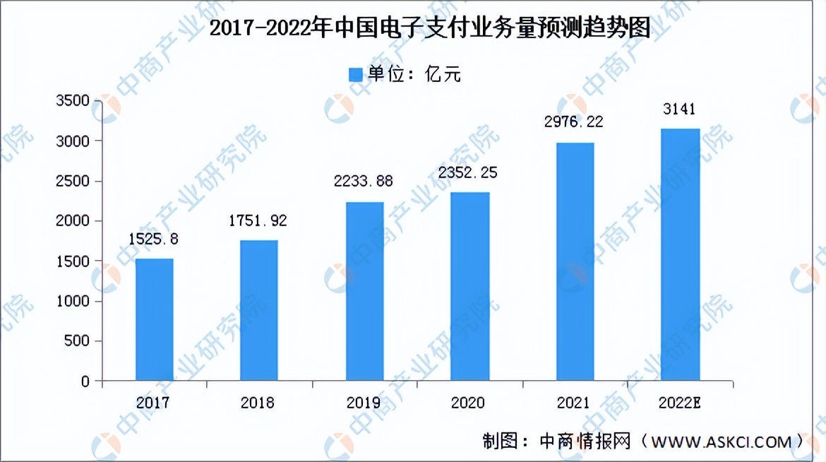 近年来,中国电子支付业务量一直保持增长趋势,2021年中国电子支付业务量金额达2976.22亿元,同比增长9.75%,预计2022年将增长至3141亿元。