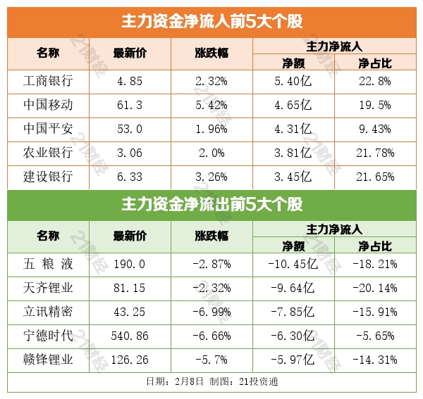 北向资金净卖出宁德时代(300750.SZ)、药明康德(603259.SH)、比亚迪(002594.SZ)、五粮液(000858.SZ)、欣旺达(300207.SZ)居前。