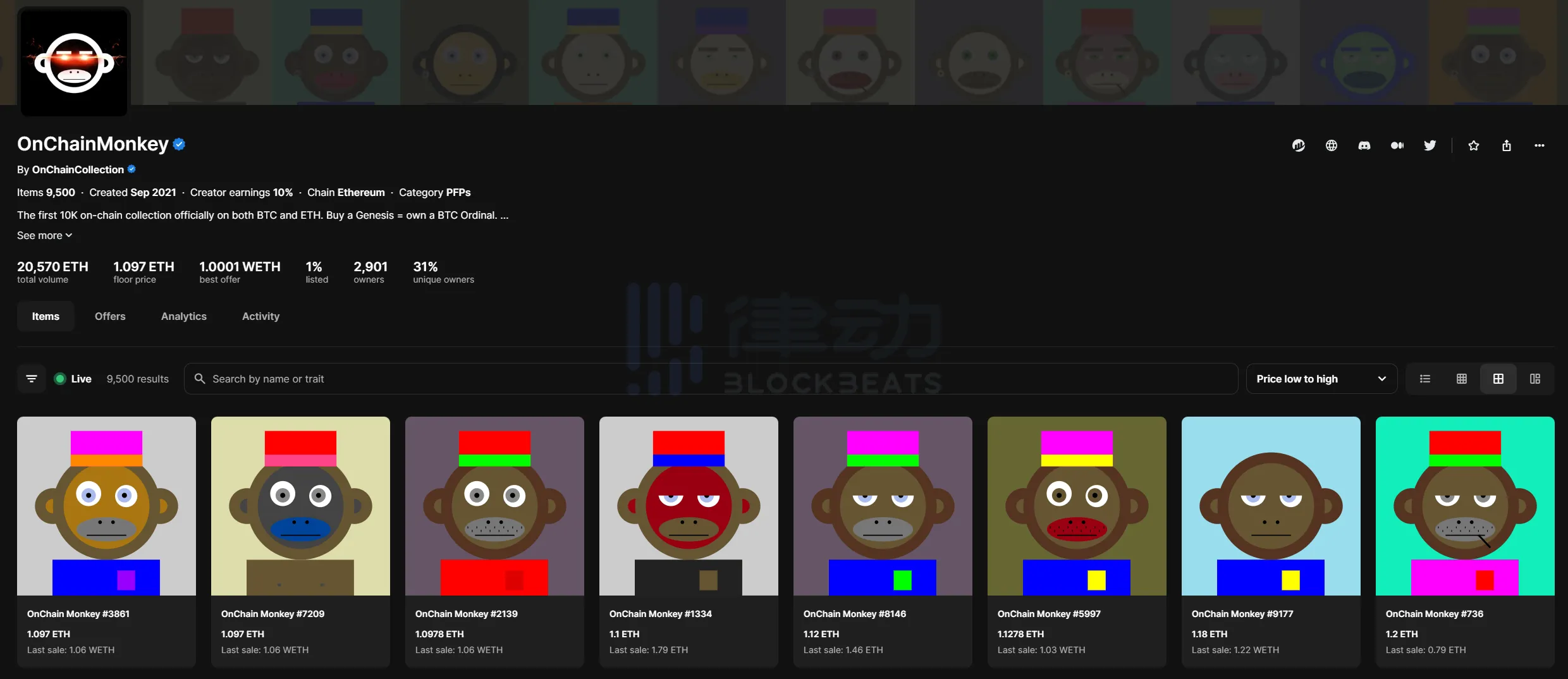 以太坊 NFT 项目 OnChainMonkey 于 9 月 6 日正式通过了将系列迁移到比特币 Ordinals 生态的提案。