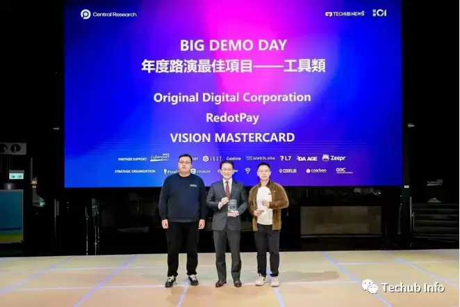 Original Digital Corporation、RedotPay和VISION MASTERCARD凭借其独特的功能和实用性获得了BIG DEMO DAY 年度路演最佳项目工具类奖项。