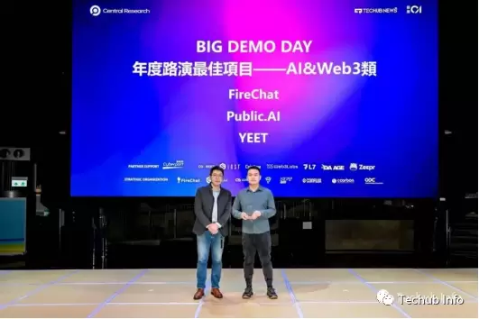 Al&Web3类项目中,FireChat、Public.Al、YEET凭借其先进的人工智能技术和区块链应用获得了年度路演最佳项目Al&Web3类奖项。