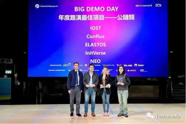在公链类项目中,IOST、Conflux、ELASTOS、InitVerse和NEO凭借其卓越的技术和创新能力获得了 BIG DEMO DAY 年度路演最佳项目公链类奖项。