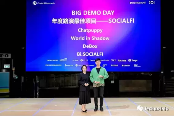 SOCIALFI项目中,Chatpuppy、World in Shadow、DeBox、Bi.SOCIALFI凭借其创新的社交模式和互动体验获得了年度路演最佳项目SOCIALFI奖项。