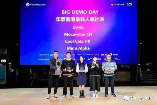 在BIG DEMO DAY的圆桌会议和路演项目结束后,我们迎来了激动人心的颁奖环节。今年,BIG DEMO DAY 香港最具人气社区奖分别由Mocaverse CN、Cool Cats HK、Mimi和Alpha夺得。