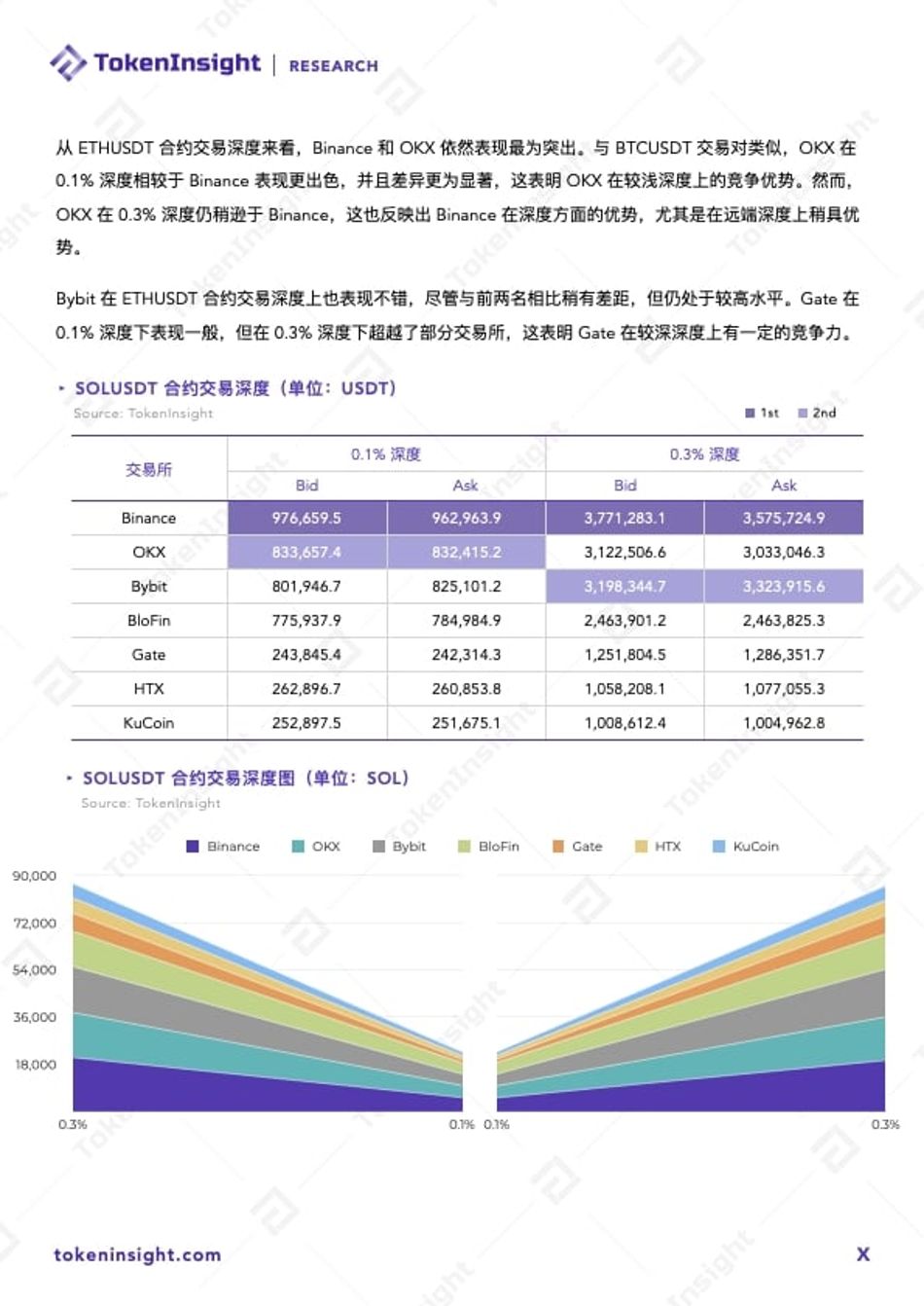 Binance 在 SOLUSDT 的两种合约深度下表现均排名第 1。